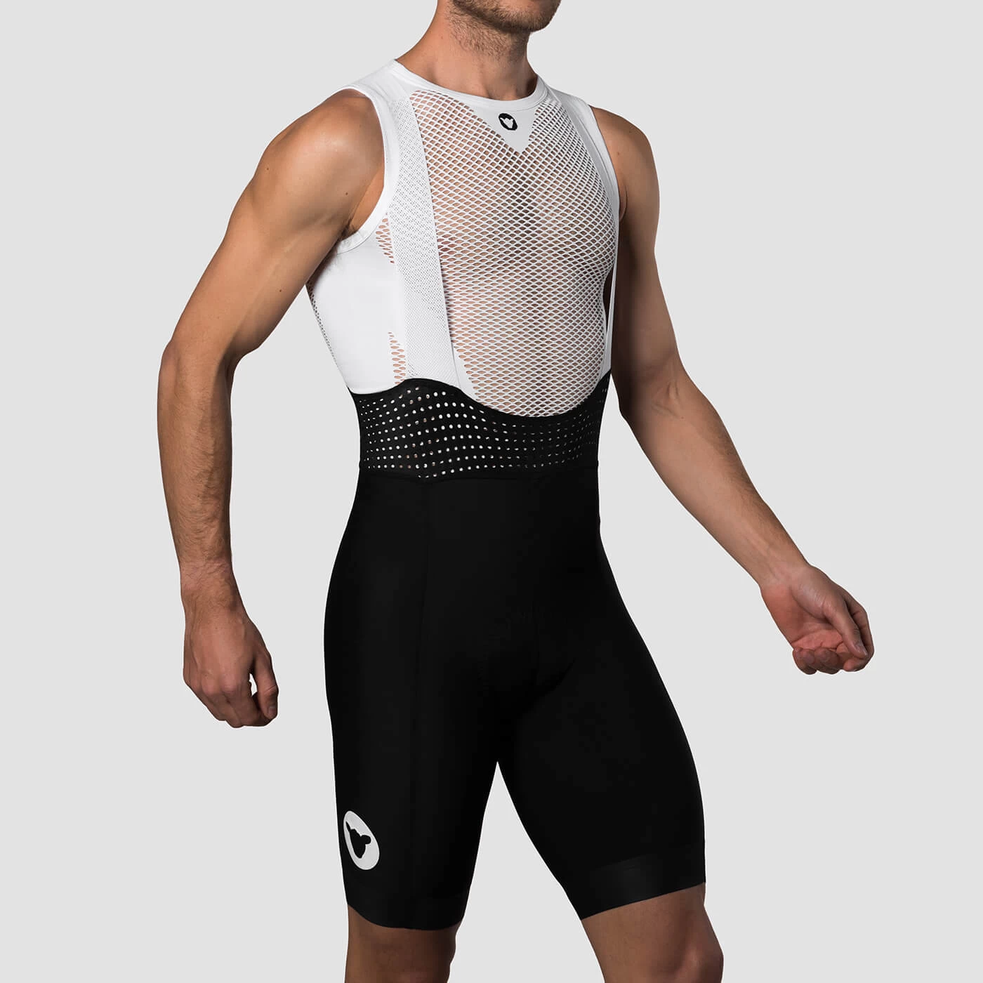 The bibs feature a Italian warp-knit fabric that moves with repetitive flexion, extension and subtle torsional stresses riders place through the hip. The perfect bib short weight of 250 gsm.