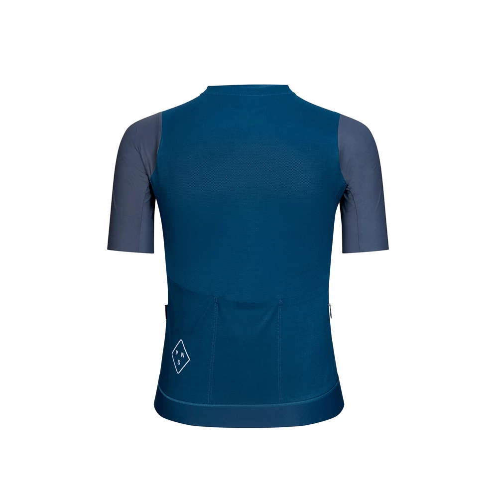 Take on the most extreme summer conditions with the new Solitude Jersey. The handstitched jersey is made from a stretch woven fabric, giving it a higher strength-to-weight ratio than today’s traditional knitted fabrics. Our signature PNS pattern has been transformed into an integrated structured surface that is featured across the front and back panels, keeping the jersey from sticking to your skin when worn without a base layer. The raised texture provides countless elevated touchpoints along the inside of the jersey which acts as an internal base layer, allowing moisture to disperse more effectively and thus, keeping you cooler for longer.